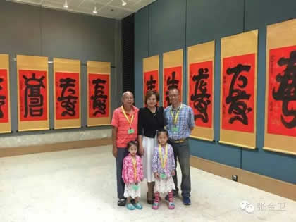 中华之光书画家赵进才先生与夫人与香港屯门文艺协进会视觉艺术委员会主席暨无名堂书法协会主席郭洪球先生合影留念