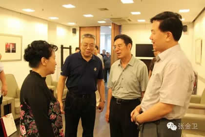 刘延福主席、张金卫秘书长、王凯英女士陪同赵庆忠部长观看展览。