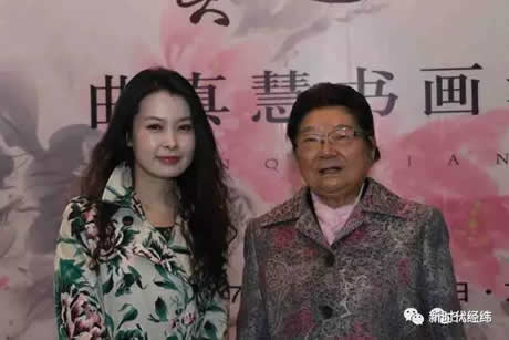 曲真慧女士陪同十届全国人大常委会顾秀莲副委员长观看展览并合影留念。