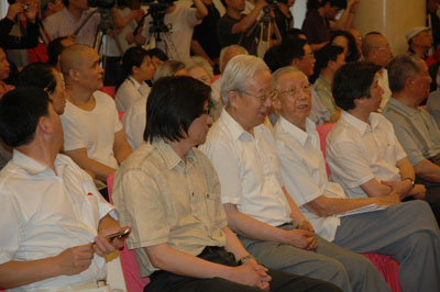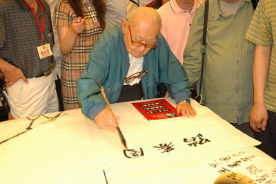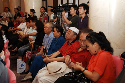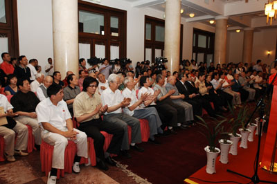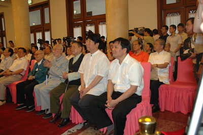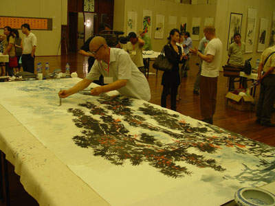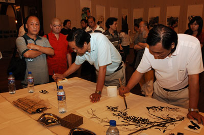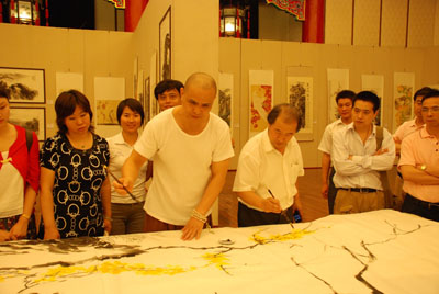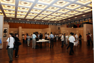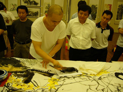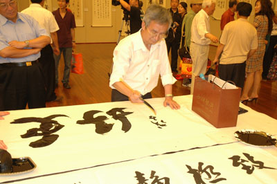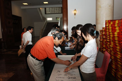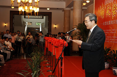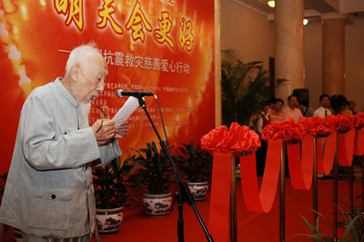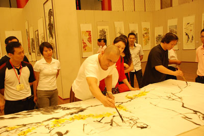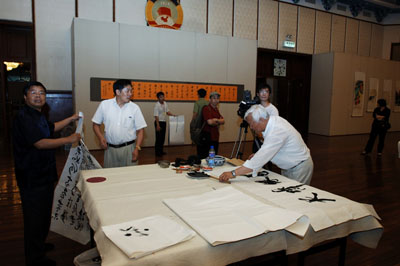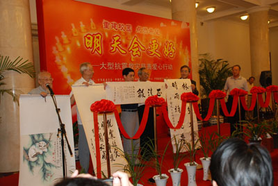 中国文化艺术界抗震救灾爱心书画作品展暨首都书画名家、演艺界名家慈善赈灾笔会现场。