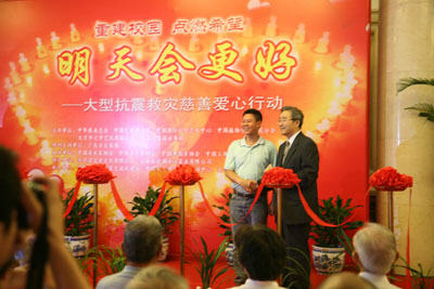 “重建校园 点燃希望”明天会更好大型抗震救灾慈善爱心行动活动开幕式现场。