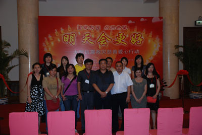 “重建校园 点燃希望”明天会更好大型抗震救灾慈善爱心行动活动开幕式圆满结束后,工作人员与志愿者合影留念。