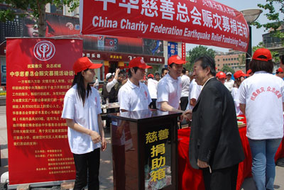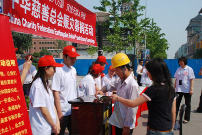 中华慈善总会在王府井金街举行赈灾募捐活动