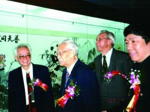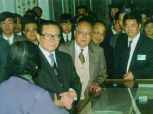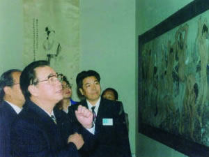 | 江泽民主席在王光英副委员长和张金卫执行理事长陪同下参观国际中国书画博览会。 |