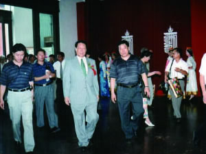 张金卫执行理事长向中央政治局常委李长春介绍客人。 |