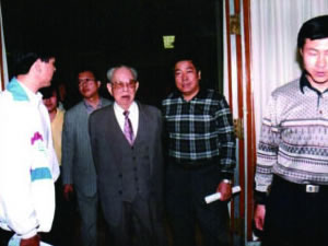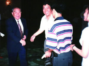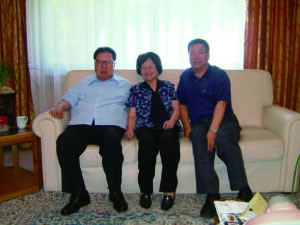| 张金卫执行理事长向乔石委员长汇报首届中国兰文化大展系列活动筹备情况,并与乔石委员长及其夫人合影。 |