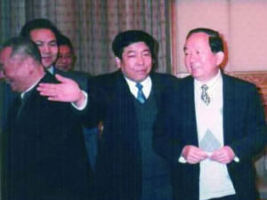 | 全国人大副委员长田纪云、原中共中央政治局委员张廷发(左一)出席本中心举办的“贵州兴义文化旅游资源利用恳谈会”。 |