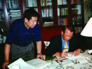 全国人大副委员长雷洁琼在中华之光中国科学技术文化城倡议书上签名。 |