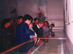 张金卫执行理事长正在向李鹏委员长介绍徐悲鸿创作的《愚公移山》。 |