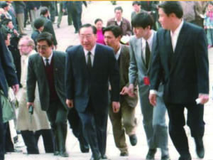 张金卫执行理事长在迎候中共中央政治局常委李岚清出席国际中国书画博览会开幕式。 |
