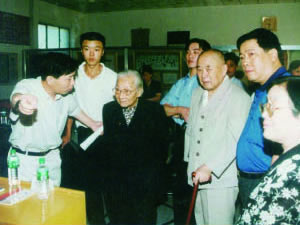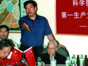 | 在中国科学技术文化城总体方案汇报会上,张金卫执行理事长正在向全国人大副委员长雷洁琼等领导介绍中科城筹备进展情况。 | 全国人大副委员长雷洁琼、中共中央原副主席李德生正在听取中科城筹备工作情况。 |